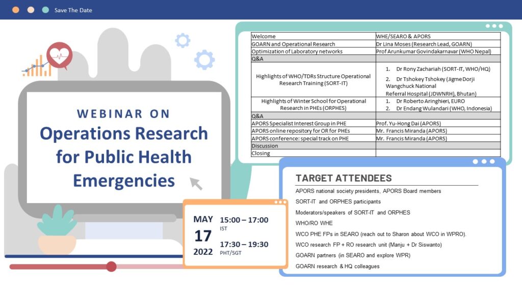 ORSNZ members have been invited to attend APORS 2022 in Cebu, Philippines. In particular the president of the Operations Research Society of the Philippines (ORSP) hopes that we might provide the following: